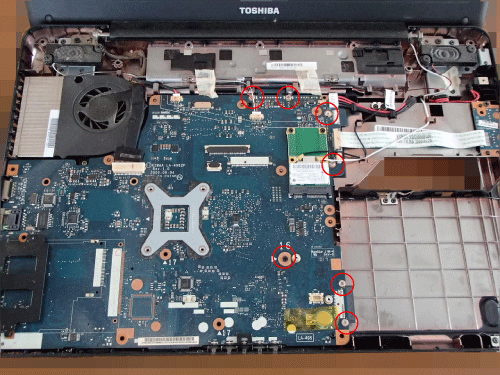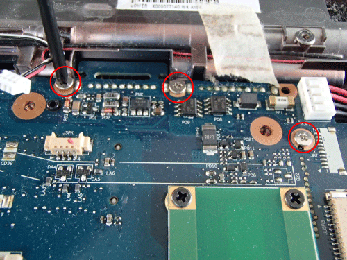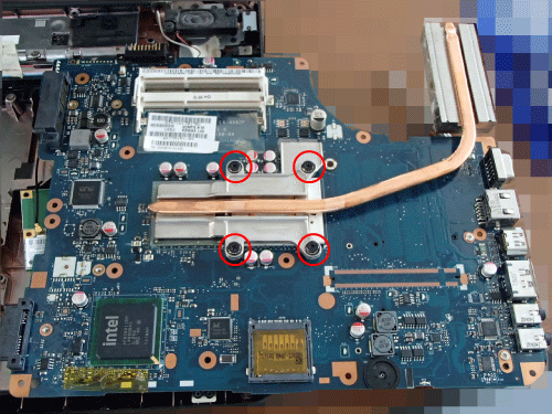 目指すCPUは基盤の裏側にありますので、マザーボードのネジを外して裏返す必要があります。