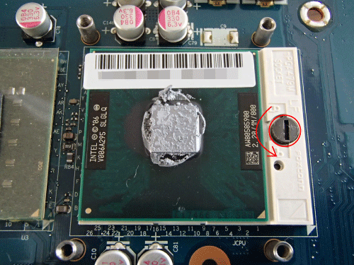 CPUクーラーの4つのネジを外すとCPUが現れます。