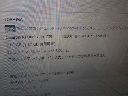 CPU交換前のWindowsエクスペリエンスです。