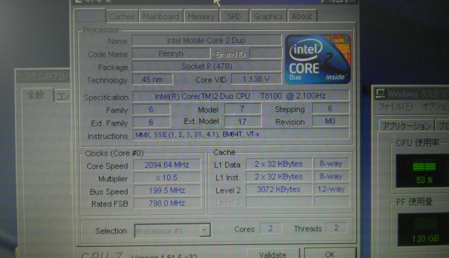 簡単に状況を載せます。(CPUはT8100/3M/800)です。